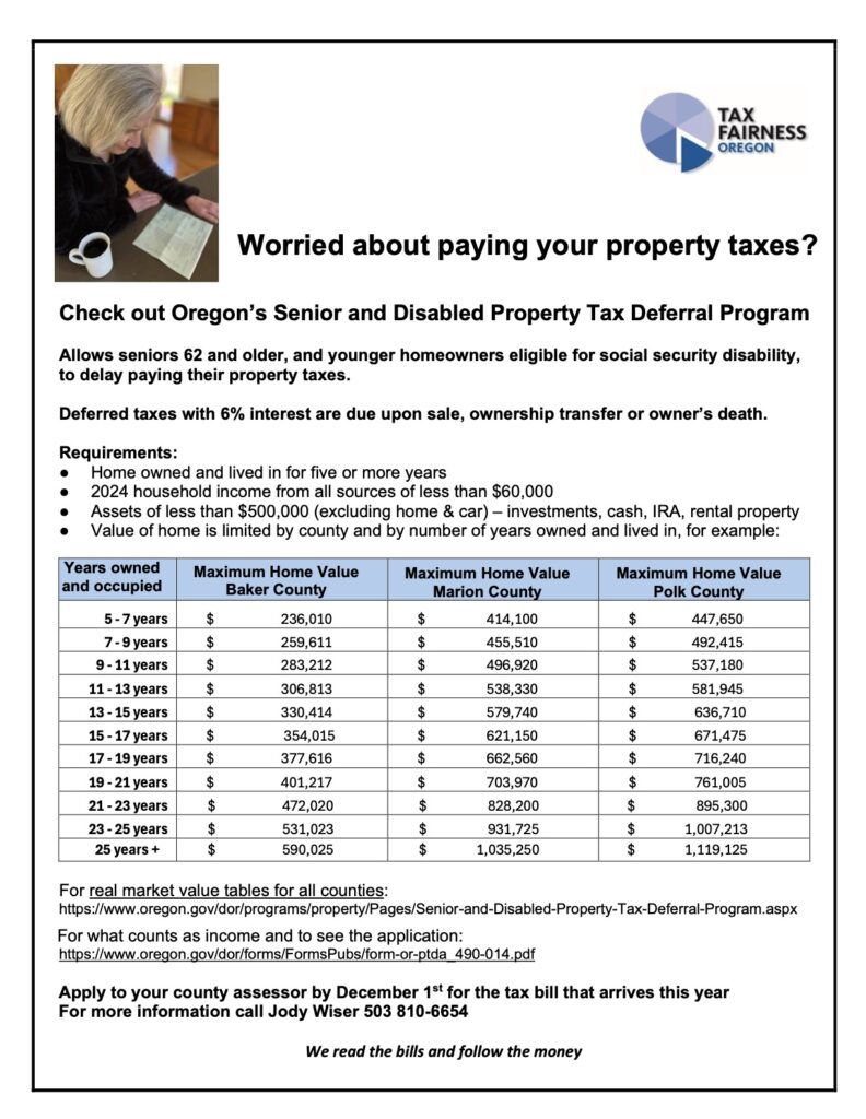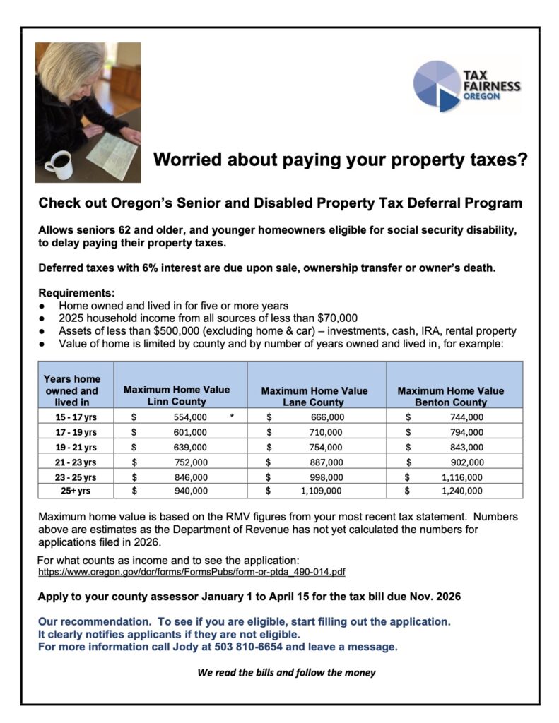 Here in Washington County our property tax bills have arrived. Yours may have too. Disabled and senior homeowners can borrow from the State of Oregon to pay their property taxes to the county.